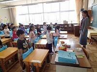休み時間は、とてもいい天気。今日から1年生が校庭に出て遊び始めました。上級生は、ジャングルジムの上っていいところを教えたり、ブランコを譲って押してくれたり、進んで関わって1年生にとても親切にできましたね。頼まれて1年生を抱っこやおんぶしている4年生もいました。やさしいお兄さん、お姉さんがたくさんいました。「もっと遊びたかったな」でもチャイムの合図でみんな戻ってきました。1年生は、お約束を守って、教室での「気を付け」も上手になりました。どんどんできるようになることが増えています。