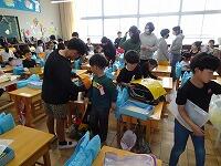 今朝も1年生教室には、たくさんの6年生がお手伝いに来ていました。小学校に入ったばかりの1年生にとって、頑張って歩いて登校した後もやることがたくさんあります。教室でランドセルから荷物を出し、机にしまったり、先生に提出するものがあったり。名札を付けることも難しいです。毎年、6年生が教室で優しく声を掛け、手伝ってくれます。今年の6年生は、1年生より人数が少ないのですが、今日も何人もの手伝いをしてくれました。教室前を通った3年生も進んで優しく声を掛けて手伝っていましたね。