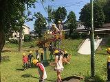 生活科の勉強で、学区内の新町公園に行きました。遊具で遊んでいたら・・・なんと!!カブトムシが3匹も飛んできてくれました!!みんな大喜びでした。そのカブトムシたちは、今教室で大切に飼っていますので、見たい方は、ぜひ1年1組にお越しください。