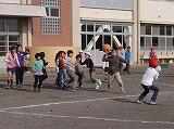 ロング昼休みになかよしタイムが実施されました。今回は、班対抗で三面ドッジボールが行われました。高学年は利き手でない方の手で投げるという思いやりのルール付きです。勝ち負けは関係なくみんなで楽しんでいました。