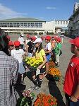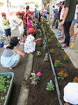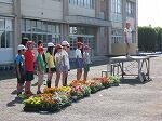 今日は栽培委員会さんの司会で、花いっぱい運動の集会を行いました。その後、花壇は夏の花に模様替えです。サルビア、マリーゴールド、日日草を植えました。