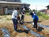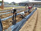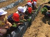6月3日(土)に、マルチを貼っていただいた畑に、今日はサツマイモの苗を植えました。一生懸命水をやりましたが、根がつくまで心配です。美味しいサツマイモがたくさんなりますように。