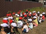 今日の2時間目に、1年生も初めて農園に行って、さつまいもの苗を植えました。ビニール袋の穴を広げたり、土に穴を空けて苗を植えたりするのが大変でしたが、頑張って植えることができました。これから毎日水やりをして、苗が根付くまでお世話していきたいと思います。