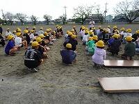 足尾の木がなくなってしまった理由についての紙芝居を見た後、植樹をしました