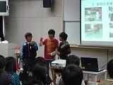 研究発表会では、6年1組の「大根の研究」と6年2組の「電球の研究」の発表が行われ、毎日放課後遅くまで研究した成果を、立派な態度で発表しました。