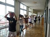1日目の午後は、自然の家の近くの海岸で「なぎさ活動」をしました。波と追いかけっこをしたり、グループ対抗で「潮くみリレー」をしたり、海に入って、波とたわむれたりしました。