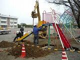 3月1日(火)にすべり台が新しくなりました。以前のすべり台は、老朽化のため安全確保の面から、使用禁止となっていましたが、新年度を迎えるこの時期に、遊具人気NO.1のすべり台が新設されました。大きさや形は以前のものとほぼ同じですが、安全面から校舎に向かって滑るように向きが変更になりました。使用開始は、3月7日(月)です。友達と大切に仲良く安全に使ってほしいと思います。