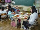 3月2日(水)になかよし班による6年生とのお別れ給食会がありました。1年生から6年生までのなかよし班のメンバーが各教室に集まって、一緒に給食を食べました。給食の献立は、ひな祭りメニューで、五目チラシご飯、すまし汁、鰆(さわら)の焼き魚、雛あられ、牛乳でした。どの班もおいしそうに、6年生との最後の給食を楽しみながら食べていました。給食に後片付けも協力してできました。昼休みは、これも最後のなかよしタイムです。各班で楽しく遊びました。ほのぼのとした優しいお別れ給食となかよしタイムになりました。もうすぐ、卒業ですね。