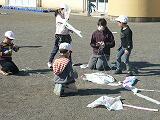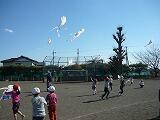 3月2日(水)の5時間目に、1年生が図工の時間に作った「たこ」を青空にあげました。どのたこも上手に作れていて、穏やかな南風に乗って元気よく舞い上がりました。でも、中には元気よすぎて糸が絡んでしまったたこもあり、糸ほどしが大変でした。どの子も満足そうで、家に帰ってやってみたいと話していました。でも、家で上げる時は、電線にかからないように注意してくださいね。