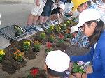 今日は花いっぱい運動の日です。栽培委員会の皆さんからお花を紹介してもらいました。そのあと、低学年は高学年に手伝ってもらって、苗植えです。サルビア・マリーゴールド・日日草、花壇はすっかり夏に模様替えです。また、学年ごとにサツマイモの苗も植えました。大きなおいもが収穫できるように、心を込めて植えました。根がつくまで、水やりもがんばります。