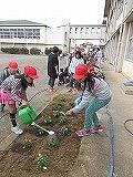 10/13(木) いきいきタイムを使って、花いっぱい運動をしました。今回は、「パンジーの苗」と「チューリップの球根」を植えました。 栽培委員が中心となって、全校児童にそれぞれの花の由来や植え方の説明をした後、各学年・クラスに分かれて活動しました。苗が大きくなって、きれいなパンジーを見るのが、今から楽しみです。