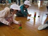 コマ回しやお手玉、竹馬、メンコ、だるまおとし、けん玉など6つの遊びで活動しました。