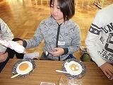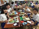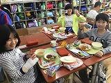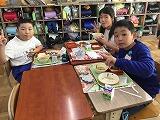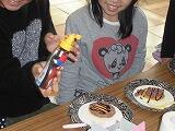ALTのジョン先生からの質問に"~,please!"と上手に答え、自分のデザートを作りました。