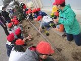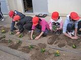 11月14日の朝は、花いっぱい運動がありました。各学年の花壇に、パンジーの苗とチューリップの球根を植えます。栽培委員会のみなさんが、花の紹介と植え方を説明してくれました。きれいな花を咲かせてくれますように。