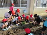 今日は、みんなで学校の花壇にお花の苗を植えました♪