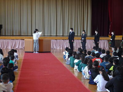 快晴の中、令和5年度入学式が行われました。教職員一同、新一年生が入学してくることを心待ちにしていました。児童のみなさんは、式中に名前を呼ばれて、大きな声で返事をすることができました。これから、元気で明るいみなさんと毎日過ごすことが、とても楽しみになりました。これからもよろしくお願いします。