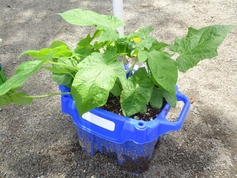 手のひらと同じくらいの大きな葉が増え、どんどん成長してきました 葉の形が芽の形と違うこと、また同じ葉でも友達と形が違うことに気付きました
