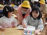 そして、目線を合わせて話をしたり、「何の絵を描いているの?」と声を掛けたり、1年生と積極的に関わる様子が見られます。普段の教室では見られない、お兄さん、お姉さんな姿に、ほほえましく思っています