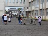 校庭東で空缶を蹴って活動していたのは、ふるさとクラブ。缶蹴りをしていました。校庭が広すぎて、隠れるところが少なくて鬼がなかなか缶から離れず、「探しに行けー」という声も聞こえました。