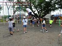 上手な上級生が高い竹馬にのって手本を見せてくれたり、補助しながらうまく乗るコツを教えてくれたりしました。高さの調節をしてあげている上級生もいました。運動委員さん、ありがとうございます。めざせ!竹馬名人!