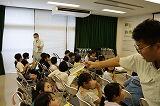 浄化センターでは、はじめに職員の方が、下水道を流れてきた水と、浄化センターできれいに処理した水をそれぞれ、ペットボトルに入れて見せてくれました。まるで、水道水のように透明になった水のすがたに驚いていました。晴れ