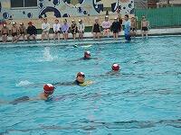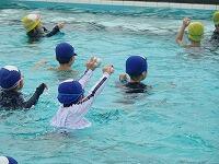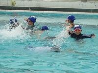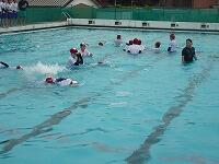 最後は2つのチームに分かれて、ボール拾いでした。両チーム合わせると100個以上拾えました。1・2年生は、すっかり大きなプールに慣れ、水と仲良くなれましたね。
