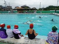 ビート板バタ足やクロールなど、自分の目標に向かって一生懸命泳ぎました。「がんばれー」「あと少しー」プールサイドからも応援の声がたくさん聞こえ、終了すると大きな拍手を送っていました。いい雰囲気の中の記録会で、きっといい記録が出たでしょう。