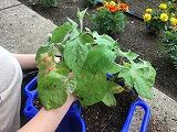 今日は、ぐんぐん育ったあさがおの間引きをしました。