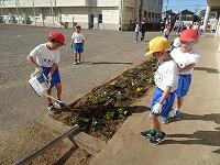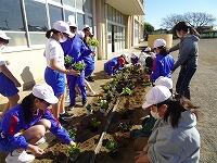 今日のいきいきタイムで、今年度2回目の花いっぱい運動を行いました。環境委員さんの花の紹介、植え方の説明の後、全校児童で花壇に花を植えました。パンジー、ビオラ、葉ボタンで花壇が華やかになりました。