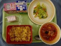 今日は「お楽しみ給食」でした。メニューは、キャロットピラフ、牛乳、フレンチサラダ、手作り肉団子入りトマトスープ、いちごケーキです。手作り肉団子は柔らかくて、おかわりした人も多かったかな?みんなでおいしいものを食べるのは、幸せを感じますね。今日の給食もとってもおいしくいただきました。ごちそうさまでした。