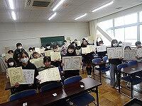 今日は第2学期の終業式でした。1年生の代表児童が2学期に頑張ったことを発表しました。はっきりとした分かりやすい声で、オンラインでもしっかり聞こえたと思います。すばらしい発表でした。校長からは、始業式にお願いしたことについて振り返り、話をしました。様々な場面で協力する姿、目標に向かって頑張る姿に、大きな成長を感じた2学期でした。児童指導主任からも冬休みの生活について、安全に過ごせるよう話をしました。教室の児童も落ち着いてしっかりと話を聞いていました。終業式後に、表彰を行いました。賞状をたくさん渡しましたが、みんないい返事ができて、さすがでした。