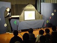 初めに、エプロンシアター「桃太郎」、次に、大型紙芝居「島ひきおに」、最後は、人形劇「魔法使いのかがみ」上演してくださいました。子供たちは、鬼をやっつけようと応援したり、大きな魔法使いが現れると歓声を上げたりして、興味深く鑑賞しました。