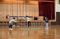 今日の3時間目、3年生はフロアーボールに挑戦しました。フロアーボールとは、ネット型のゲームで、ネットの下を通し、手でボールを打ち、相手のコートのエンドラインを通過すれば得点となるゲームです。