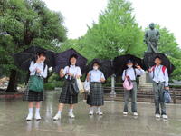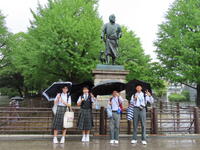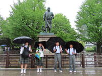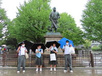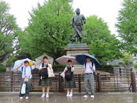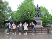雨ニモマケズ、風ニモマケズ、無事に全員西郷隆盛の足元に集合できました。しかも、5分前行動も完璧!