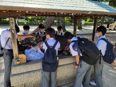 全員クラス、北野天満宮で参拝しました!おみくじ、お守りを買って、撫牛を撫でれば頭が良くなる……訳がありません。これで、頭が良くなる条件は揃いました!その上で、やはり『努力』が必要ですね。