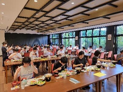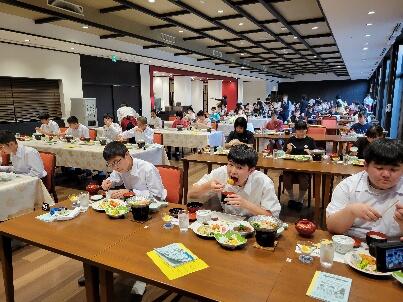 お陰様で全員元気に無事到着しまして、楽しみにしていた夕食です。朝早いランチだったので、みんな食欲旺盛です!