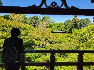 お陰様で本日もニッポン晴れ!2組はまず東福寺です。青紅葉が最高です。おやおや、ここはのぞきはいいのですか?!オッケーです(笑)