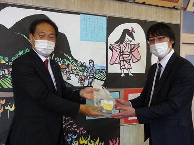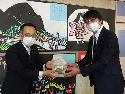 <その3> 3/11(木)に、お子様の卒業とともに、今年度末で『親父の会』を「卒業」される3名の部員様に、部長様より記念品を贈呈しました。長年のご支援に対し、心から感謝申し上げます。