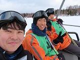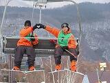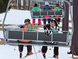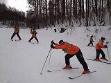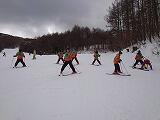 スキー実習午前の部もそろそろ終わりですが、少しずつ斜面が急なところへ行き、苦労している生徒も出てきました。そして、いよいよリフトに乗ります。きちんと降りられるか心配です。