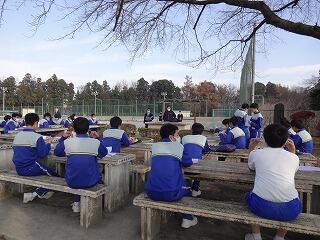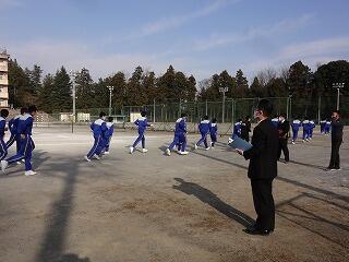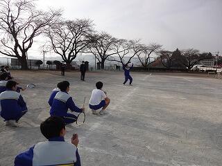 本校では、生徒の学力向上を目指して、全ての教員が1年間に1回以上、研究授業を実践しています。今回は3年男子の保健体育(ソフトテニス)の授業です。授業には、栃木市教育委員会の先生をお招きし、授業後、研究会にてご講話をいただきました。