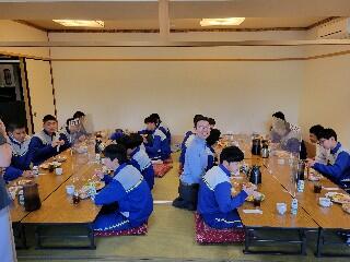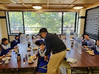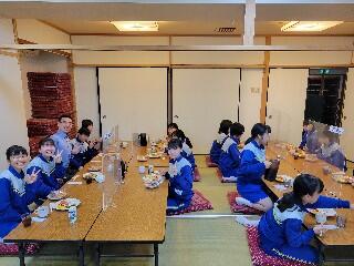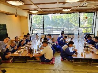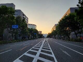 おはようございます。2日目の朝です。本日もニッポン晴れ!ホテル前の御池通もご覧のとおりです。朝食はパンです。たくさん食べて班別学習を楽しみましょう。おやおや、伊賀忍法分身の術(笑)