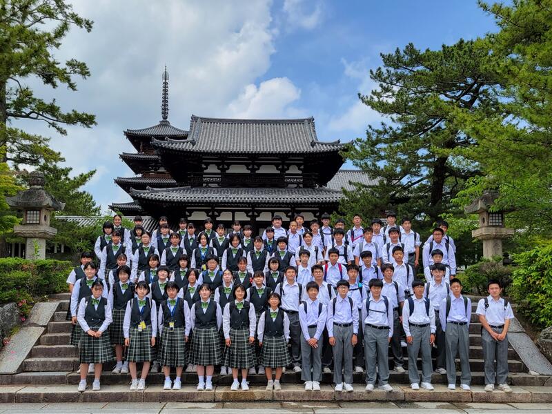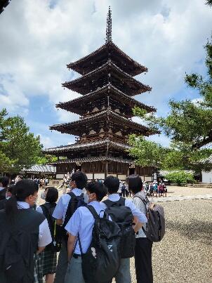 奈良に到着しまして、はじめに世界最古の木造建築として有名な法隆寺を見学しました。柿はなっていませんでしたが、鐘が鳴り響き、飛鳥時代に戻った気持ちになりました。