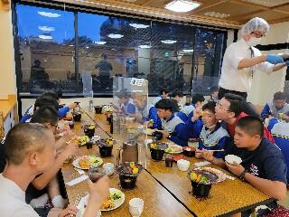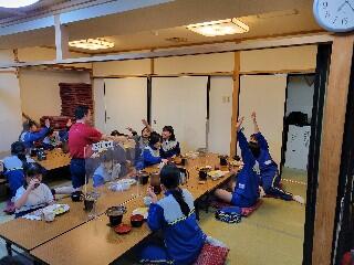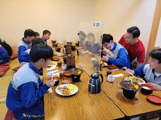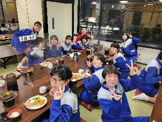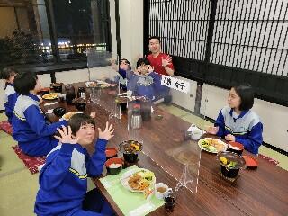 2日目、全員無事に到着!座禅体験の緊張から解き放たれたせいか、食欲が止まらない。競うかのように、おかわりの手が上がり、ホテルの方も大変そうでした。おやおや、2組女子に生徒が一人多いぞ?!
