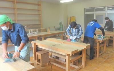 親父の会16名の部員様が、木工室机の研磨、クーラー清掃、放送室カーペットの交換、体育館ステージのカーテン等高所整備を行ってくださいました。偉大なる巧(たくみ)集団に、あらためて感謝申し上げます。