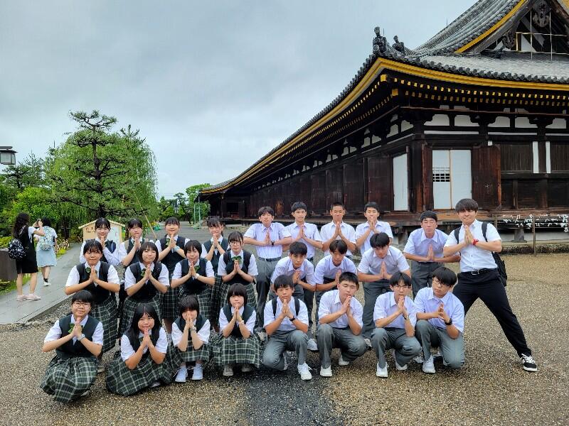 雨の影響で見学地が変更になりましたが、最後は三十三間堂です。安心してください。ナント!もう雨があがりました。
