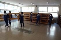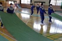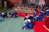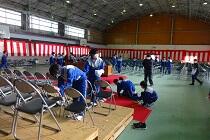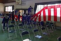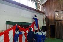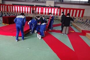 昨日、2年生がきれいにしてくれたシートを敷き、雛壇を設置し、演台を置き、椅子を並べ、紅白幕を張りました。1年生は体育館の外と校舎内を掃除しました。いよいよ雰囲気が盛り上がってきます。