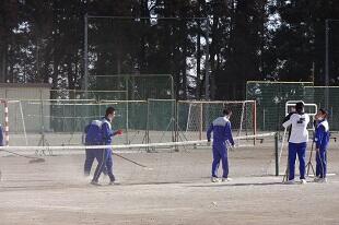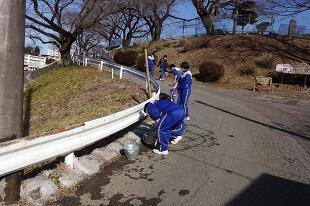 11月8日(土)午前7時30分から、大会に出場している部以外の1,2年生が、栃木うづまライオンズクラブの方々と栃木市総合運動公園内で清掃ボランティアを行いました。落葉の季節となり、公園内の通路には落ち葉がたくさん落ちていました。ライオンズクラブが用意してくださった竹箒、てみ、ゴミ袋を使って、約1時間落ち葉の清掃をしました。