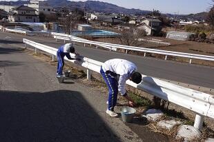 3年生が卒業を前に3年間お世話になった吹上中学校に感謝の心を込めて奉仕作業を行ってくれました。駐車場のライン引き、校庭の整備、あいさつ坂のガードレールの掃除等々。