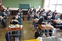 3年生最後の給食です。最後の給食は友だちと仲良く会話しながら食べたかったでしょう。