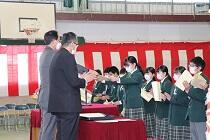 3年生の表彰式を行いました。部活動やコンクール等々、多方面にわたる表彰を多くの生徒が受けました。